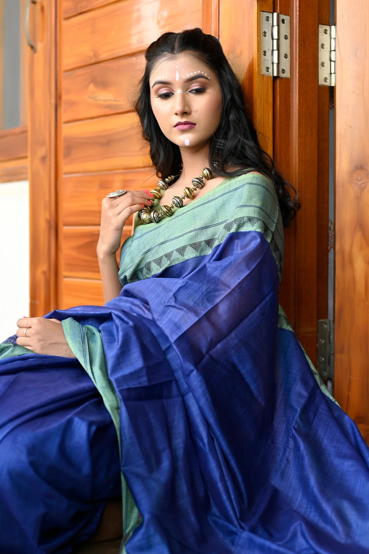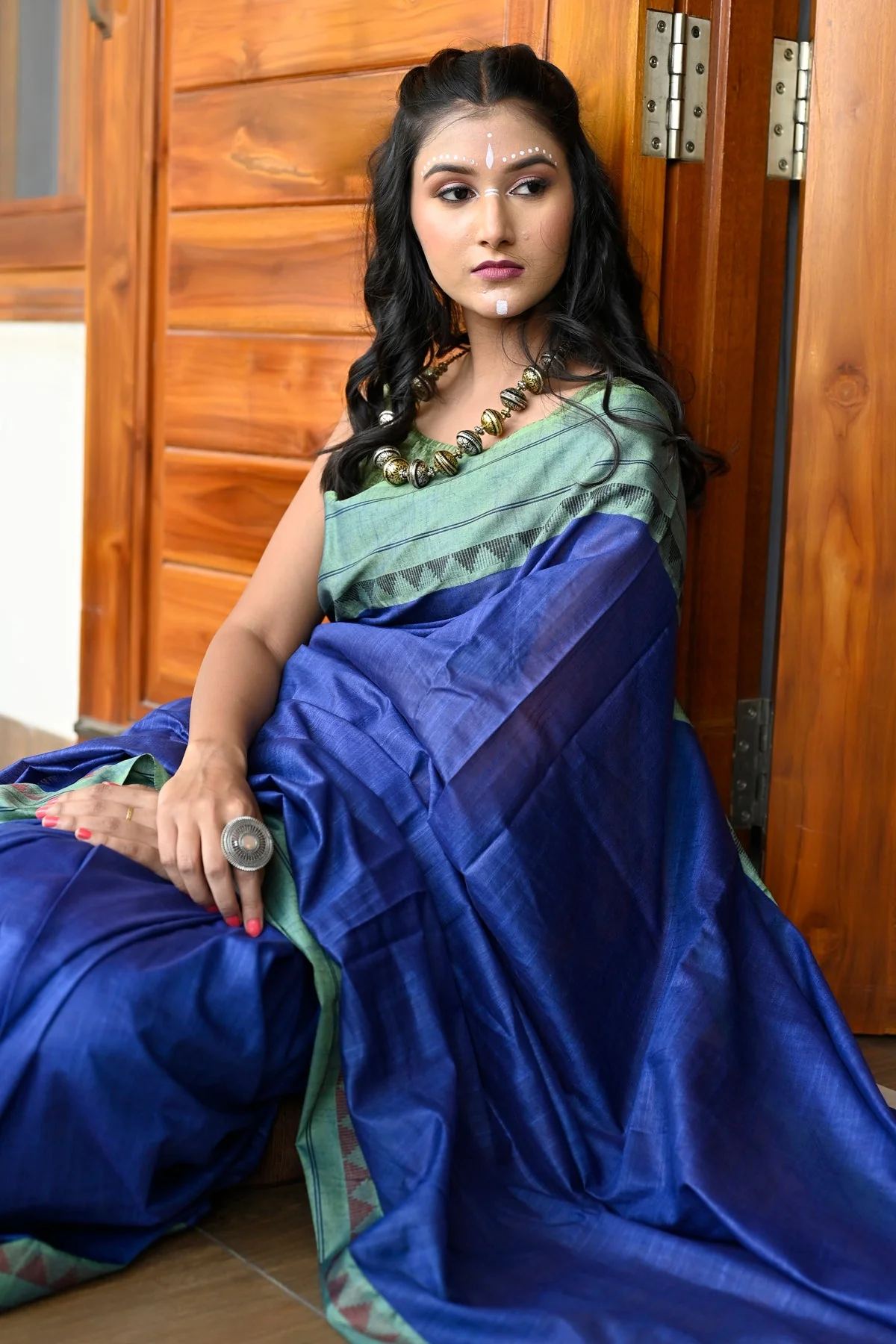 Handloom weaved saree made with threads of Pure fabric. The model is wearing a blouse from our stylist’s collection, actual blouse will be 90-95% similar to this. See the image for a mock-up of what the actual blouse would look like.