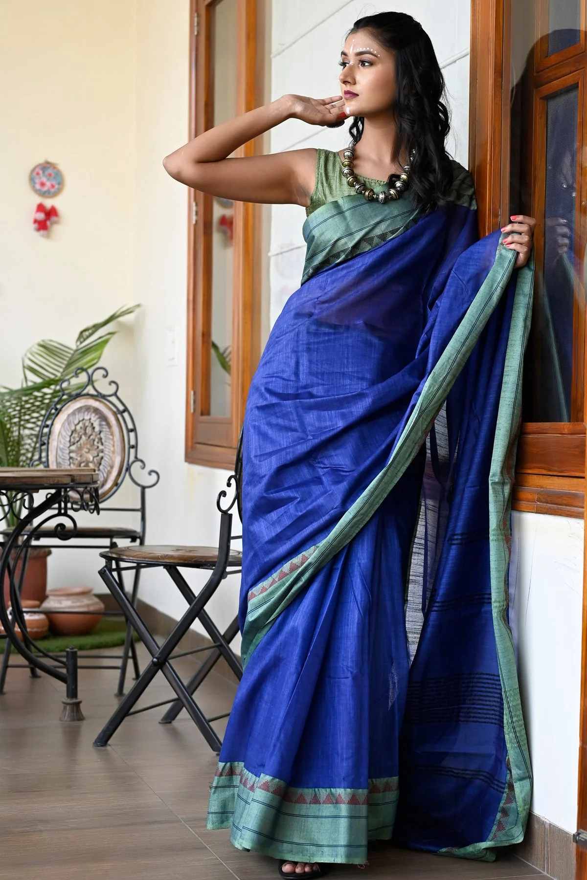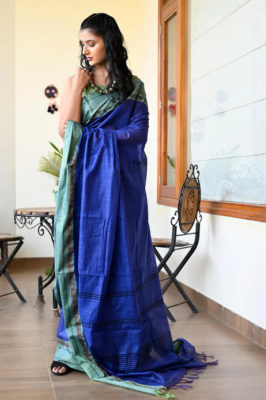 This saree is handcrafted in the villages of Maheshwar, India