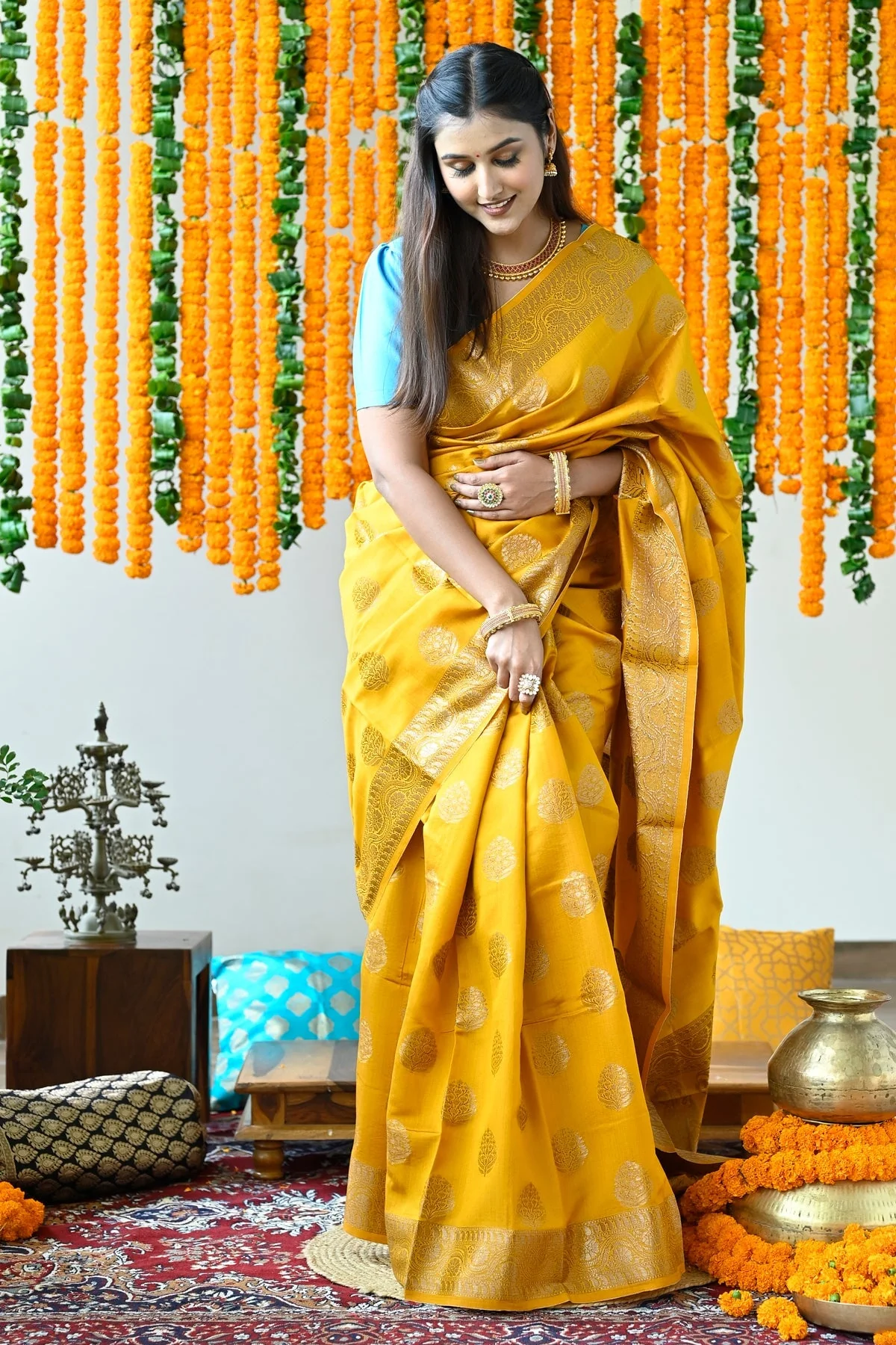 Mustard Yellow Pure Pondicherry Silk Handloom Saree