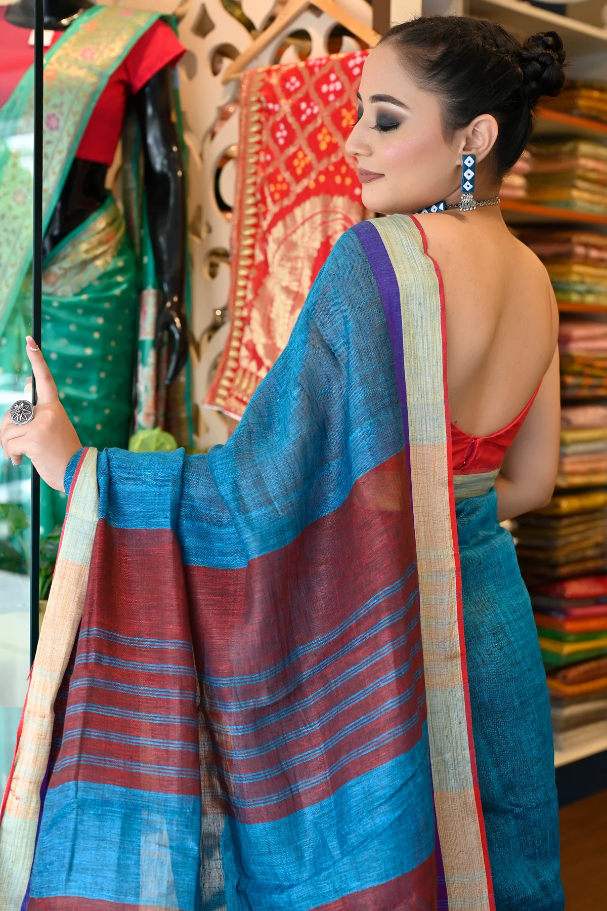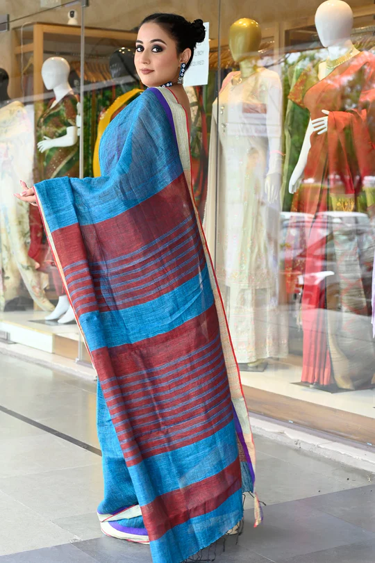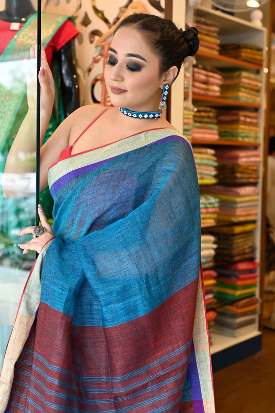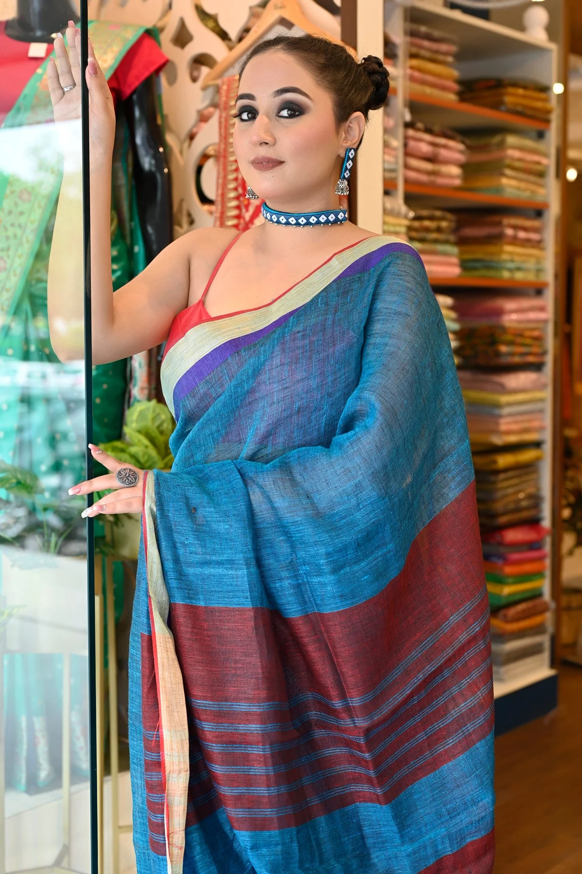 Adorned with beautiful contrasting border, this saree is the pinnacle of excellent craftsmanship. A must-have for your wardrobe.