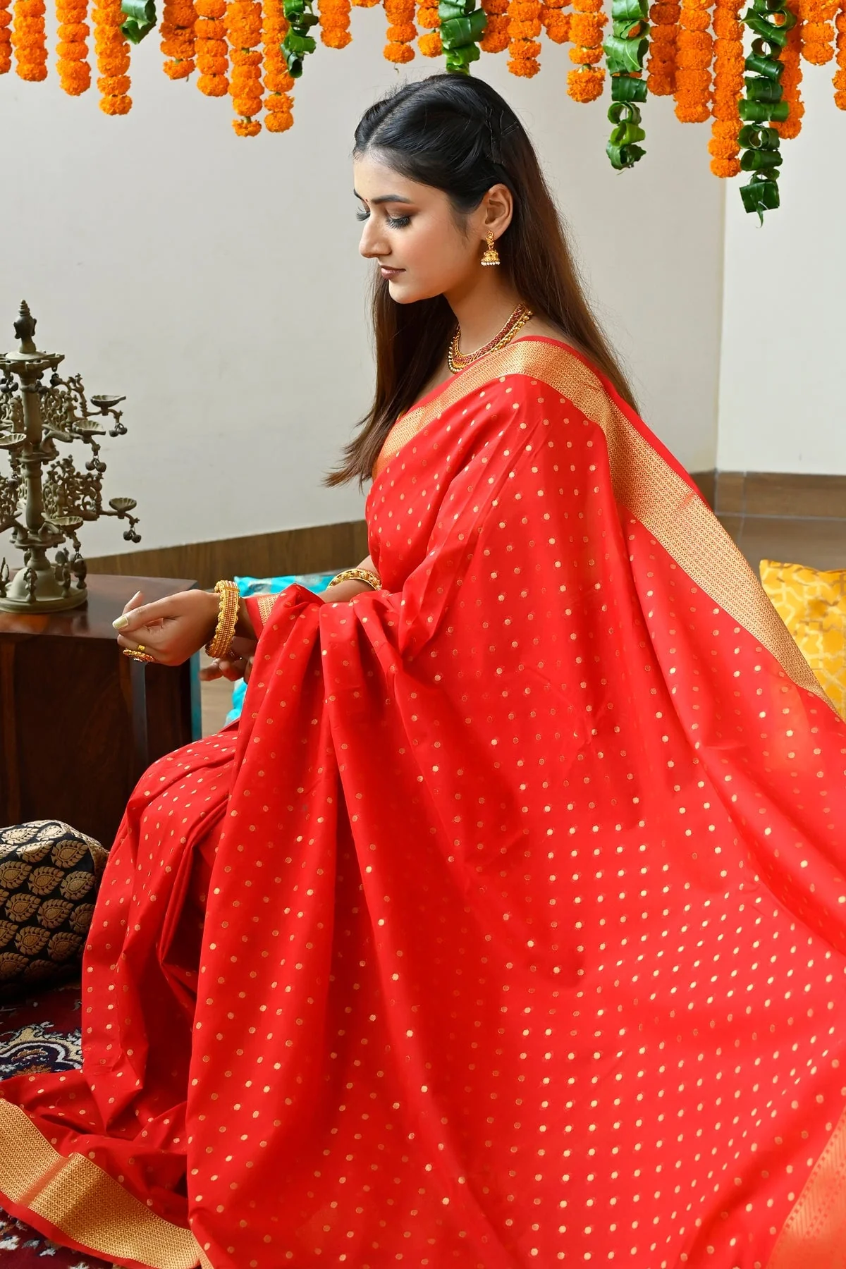 Zari work is known for the art of weaving threads in golden and silver colours. It involves the process of twisting a flattened metallic strip, which sometimes is made from pure gold and silver.